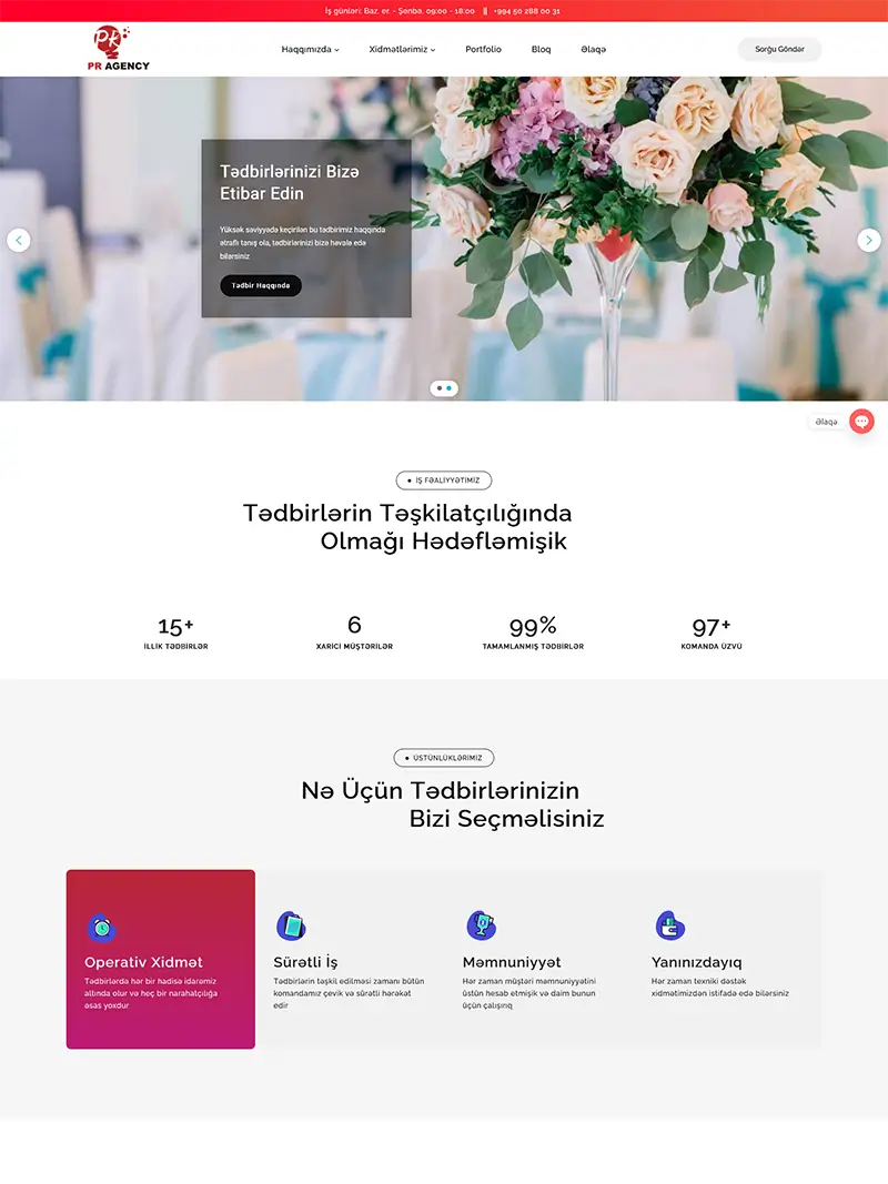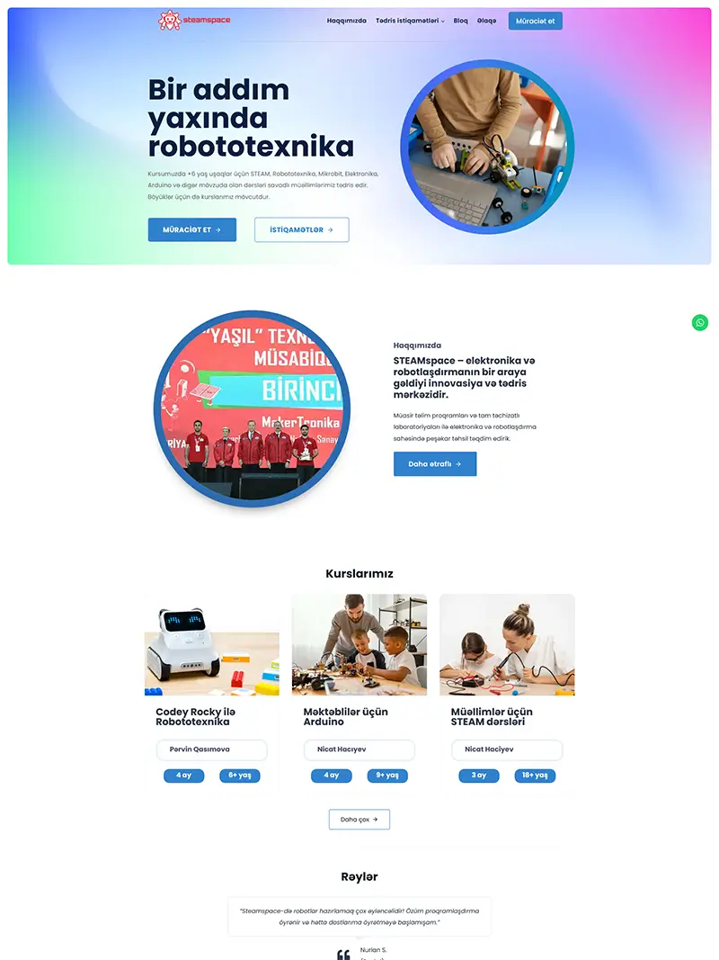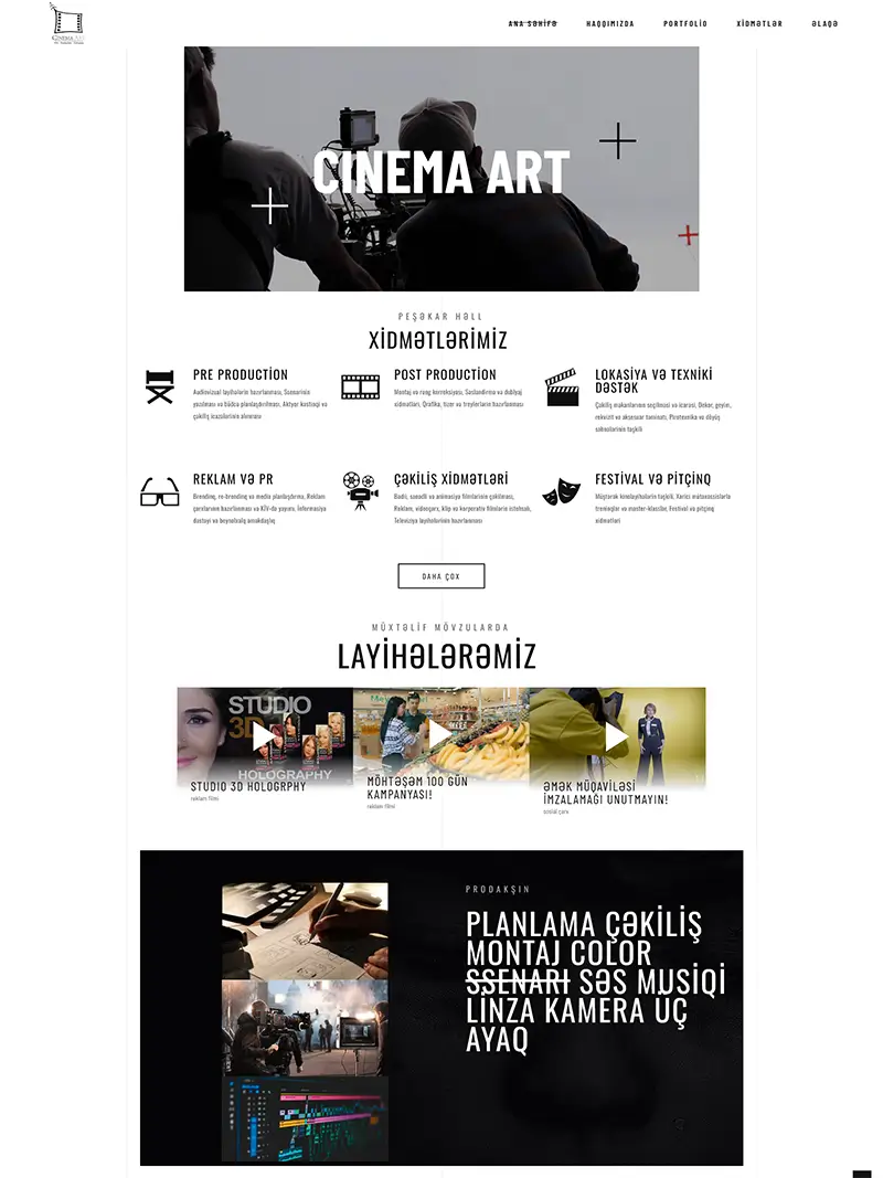 Sizin üçün funksional, estetik və istifadəsi rahat vebsaytlar hazırlaya bilərik. Aşağıda müxtəlif sahələr üzrə gördüyümüz layihələrlə tanış ola bilərsiniz. Hər bir sayt müştərinin tələbinə uyğun şəkildə hazırlanaraq, mobil uyğunluq və sürətli işləmə kimi əsas texniki standartlara cavab verir.